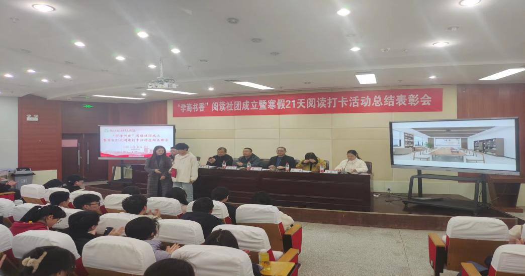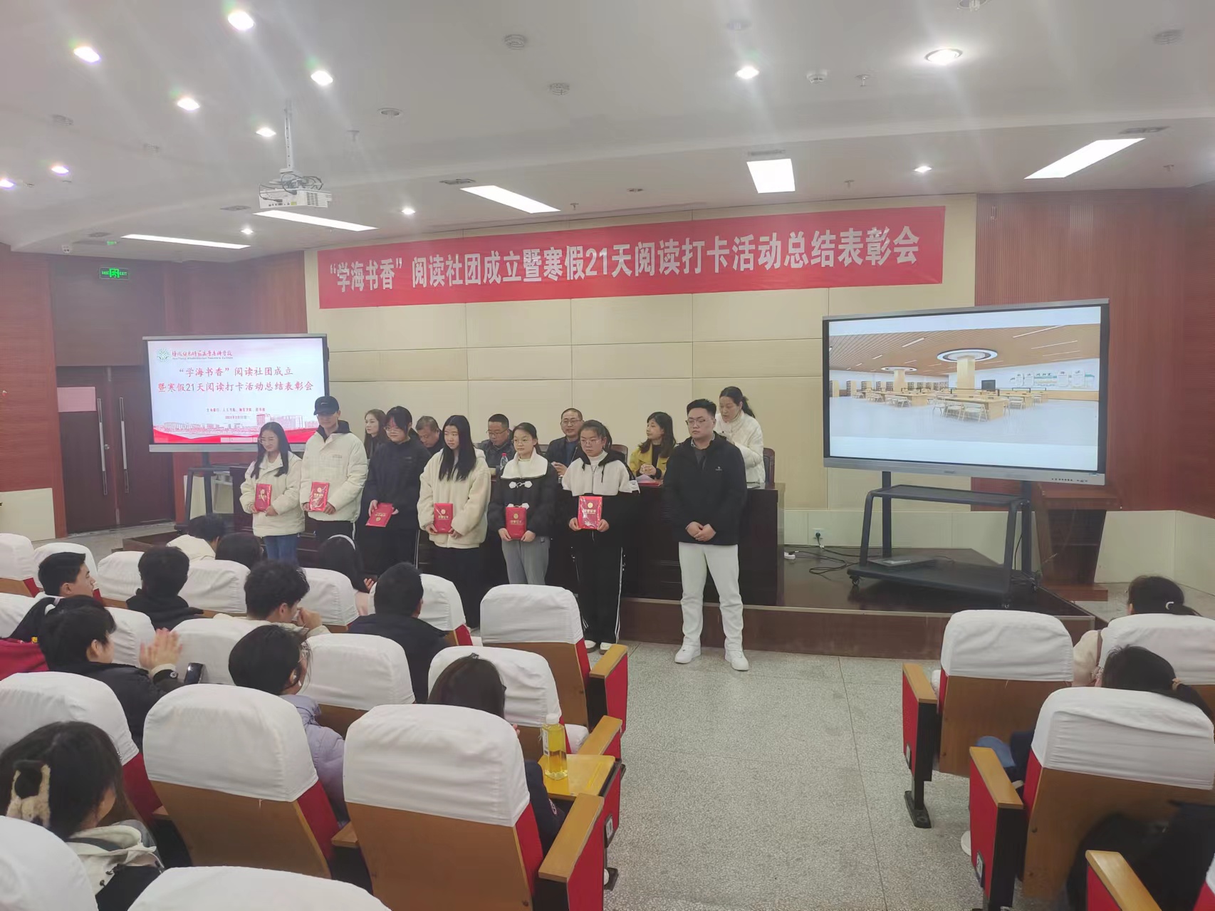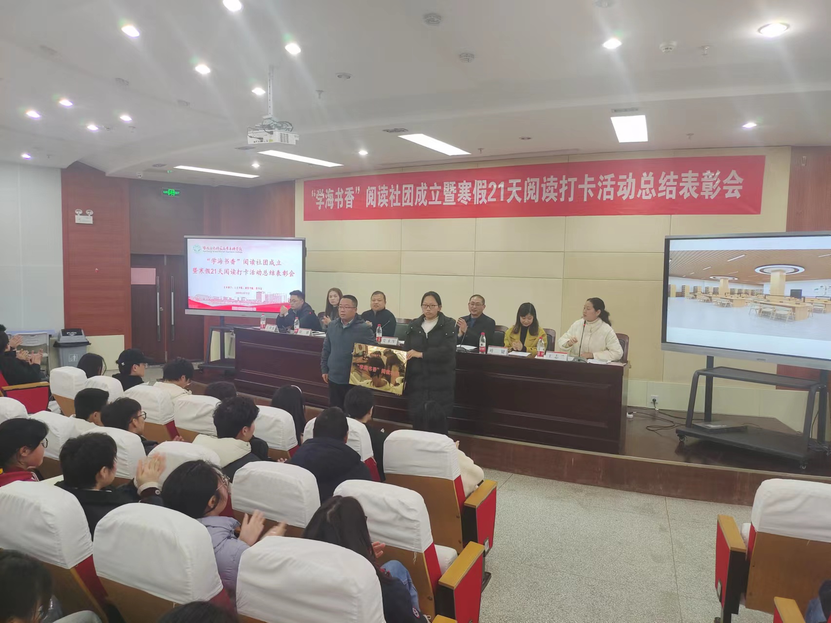 2024年3月13日下午,校图书馆在海洋路校区图文信息楼一楼阶梯教室召开“学海书香”阅读社团成立暨寒假21天阅读打卡活动总结表彰会,人文学院院长党永军、图书馆馆长陈红、城市管理学院副院长康宏伟、人文学院副院长周麟、人文学院老师杨磊、叶婕,学生社团成员、寒假阅读打卡前10名人员、4个本科班学生、北京汇云博图科技有限公司京东阅读项目盐城负责人吴聘驰等参加,会议由图书馆副馆长王志兰主持。